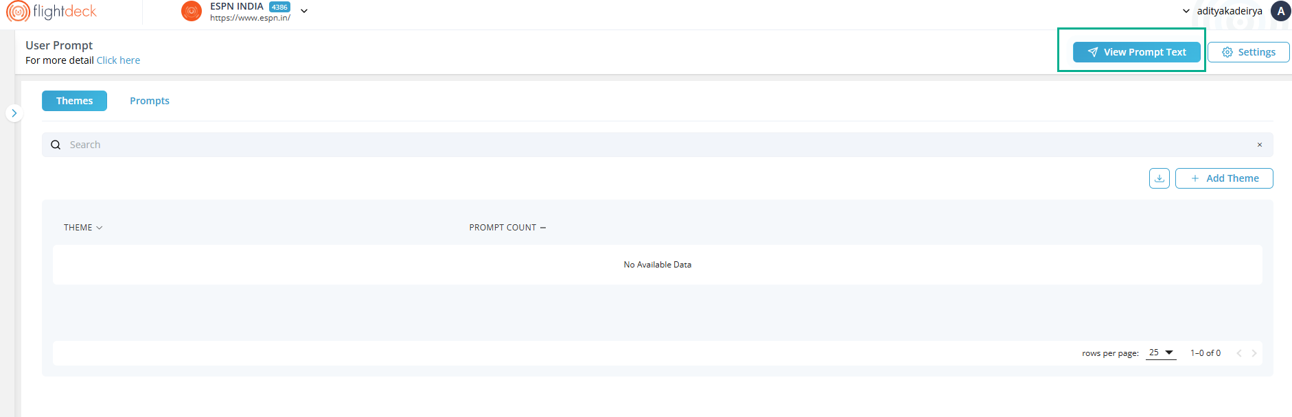 Once getting redirected to User Prompt Generator page, on top right side below profile section, we can see Setting button, clicking it will open a pop-up.